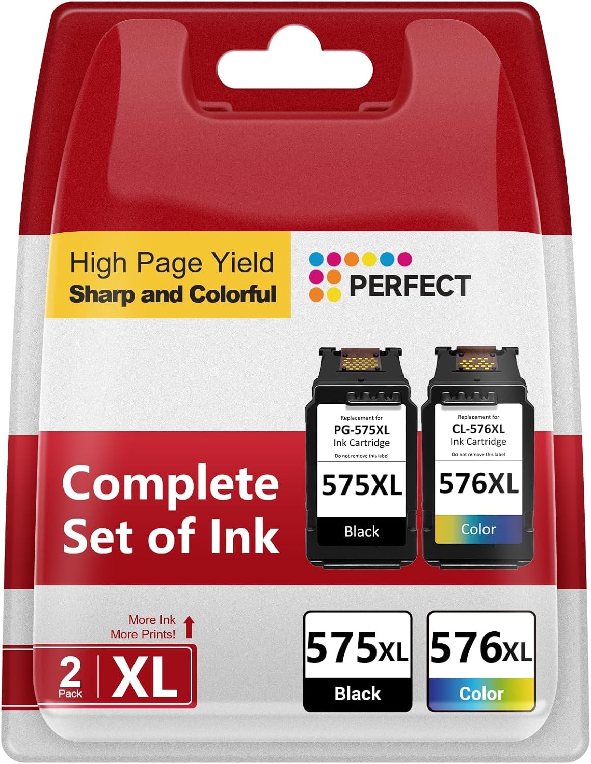 Economink Compatible with Canon 575 576 XL Ink Cartridges, PG-575XL Black & CL-576XL Color for Canon Pixma TS3550i TS3551i TS3750i TS3751i TS3752i TR4750i TR4751i TR4755i TR4756i Printers (High Yield)