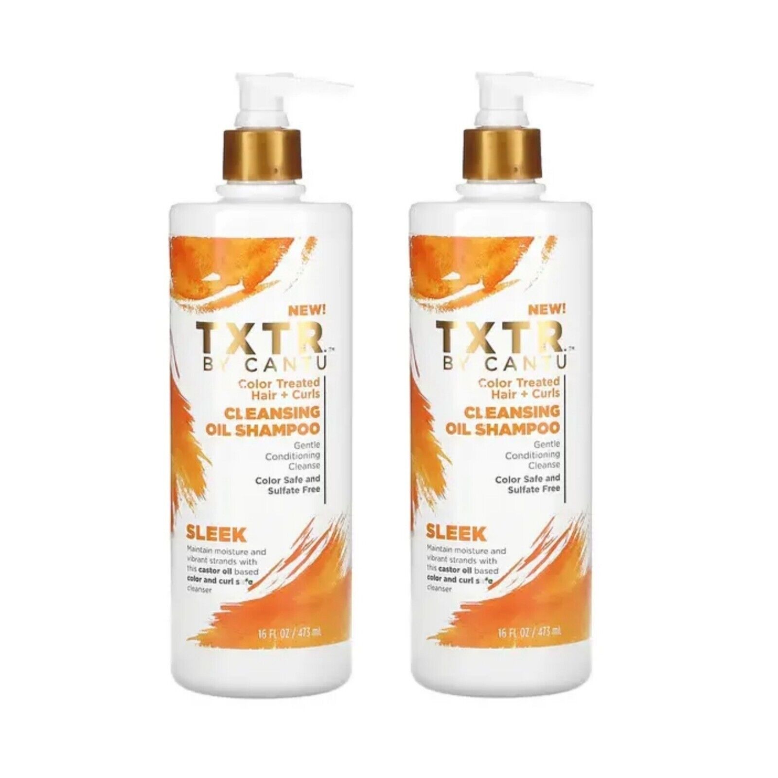 2x Cantu TXTR Cleansing Oil Shampoo Sleek Color Treated Hair+Curls 16 oz/473 ml