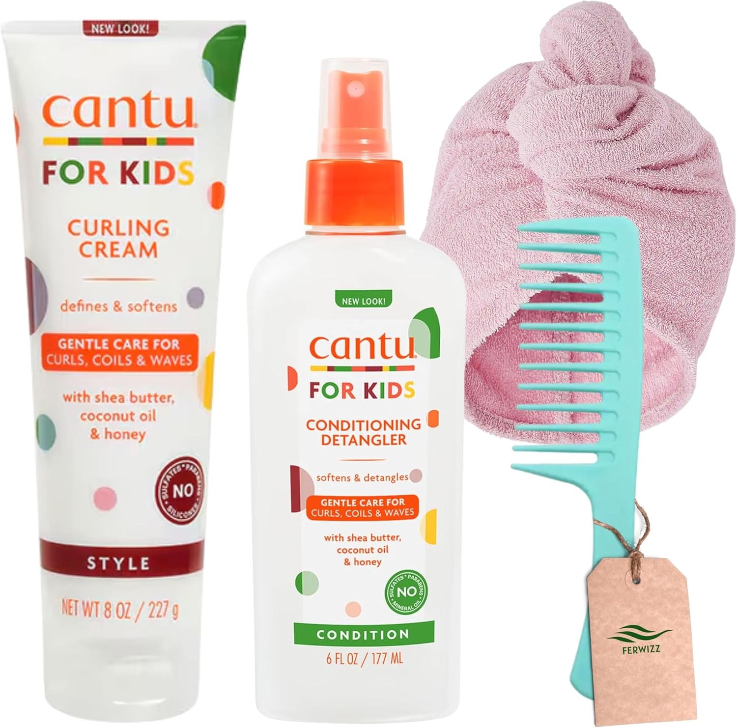 Kids Conditioning Curly Hair Bundle with Cantu Curling Cream 227g Detangling Sp