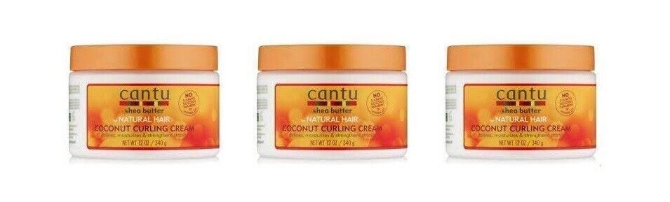 BL Cantu Natural Hair Coconut Curling Cream 12 oz Jar - THREE PACK