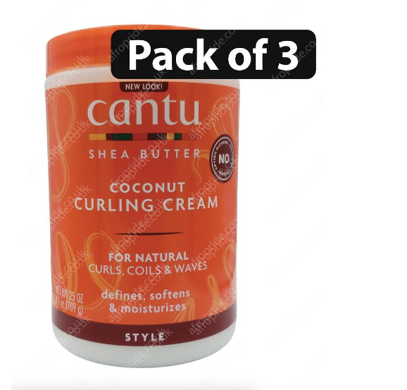 Cantu Shea Butter for Natural Hair Coconut Curling Cream 25oz 709g - Pack of 3