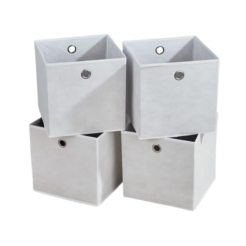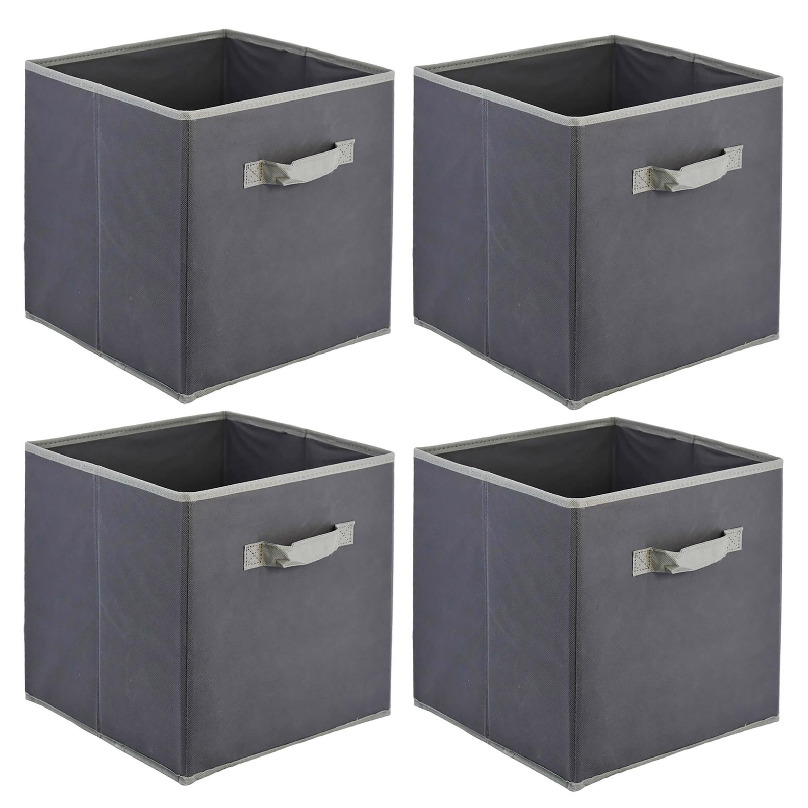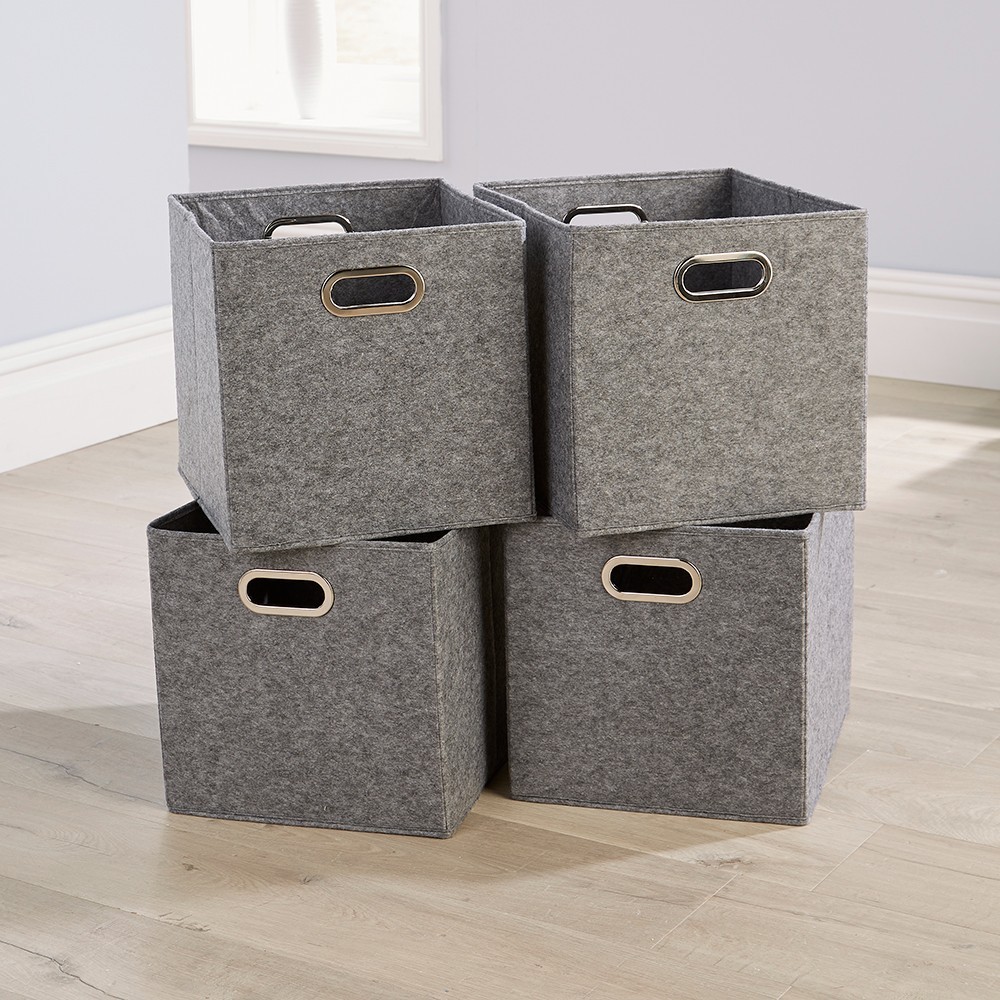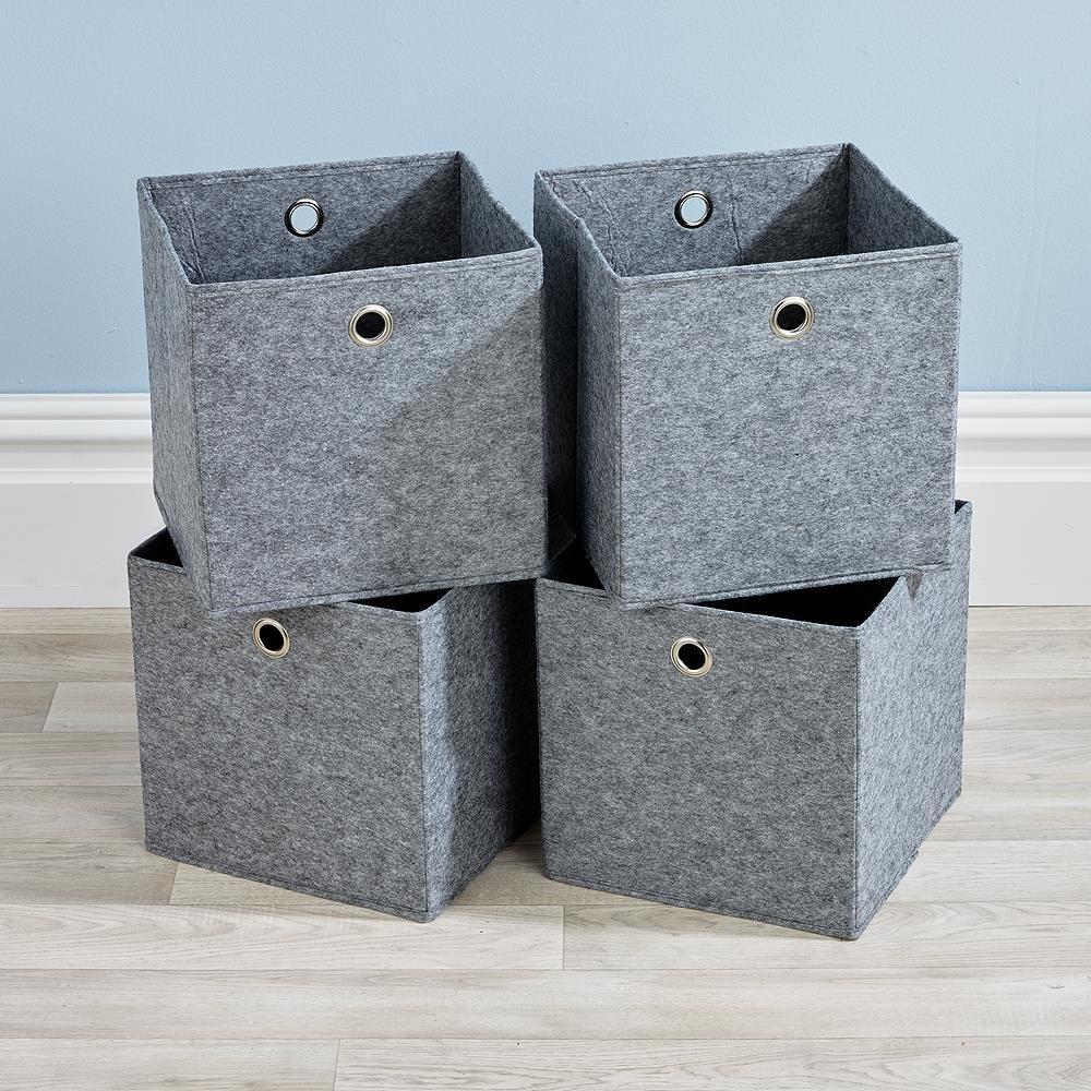 Home Source Cube Storage Boxes, Collapsible Fabric Storage Baskets, Foldable Canvas Organising Boxes, 4 Piece, Felt Grey