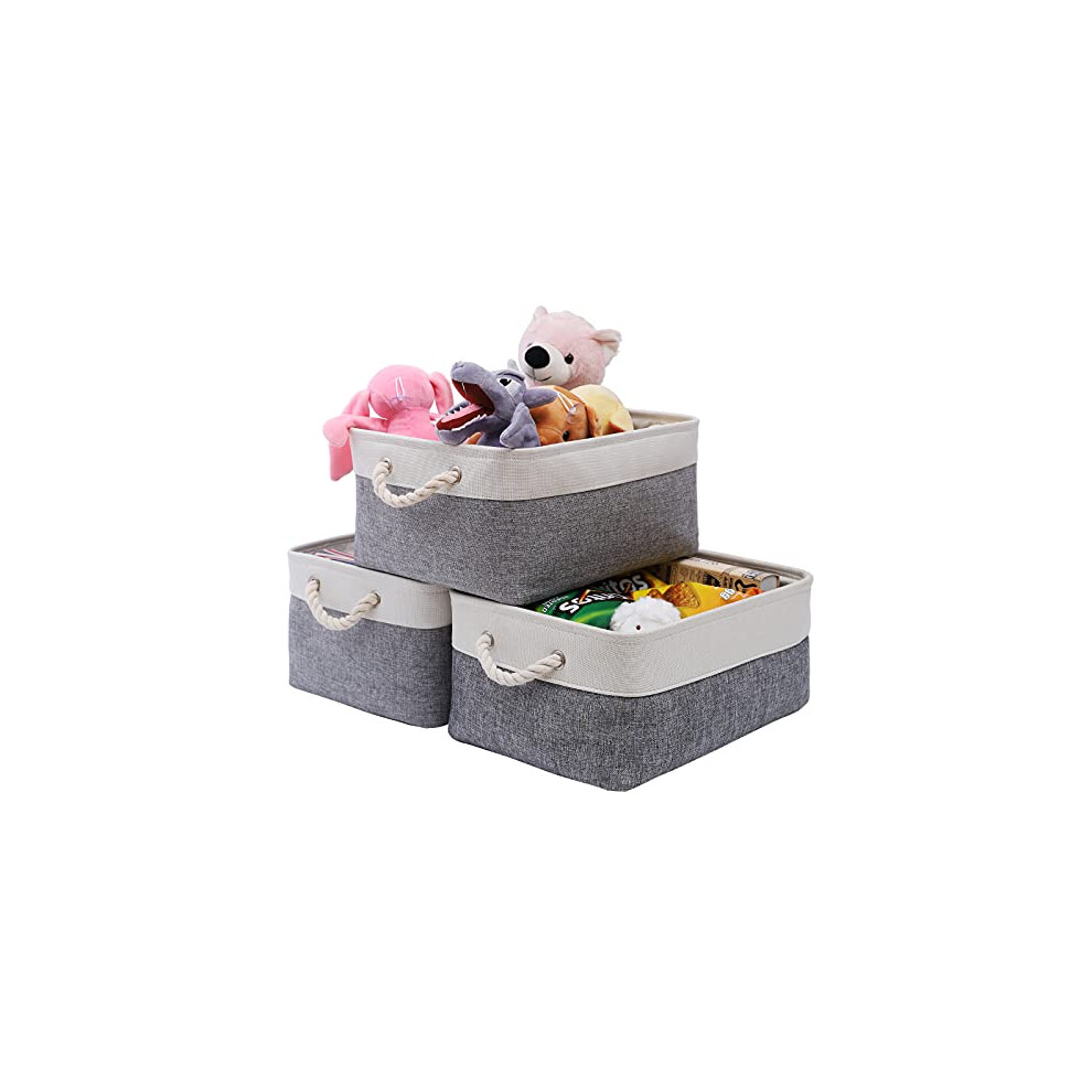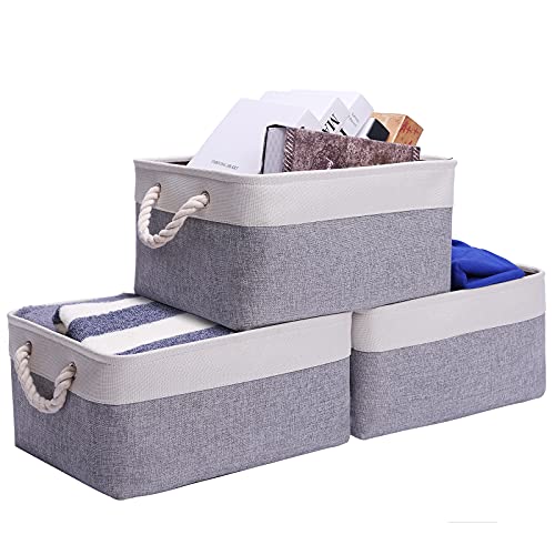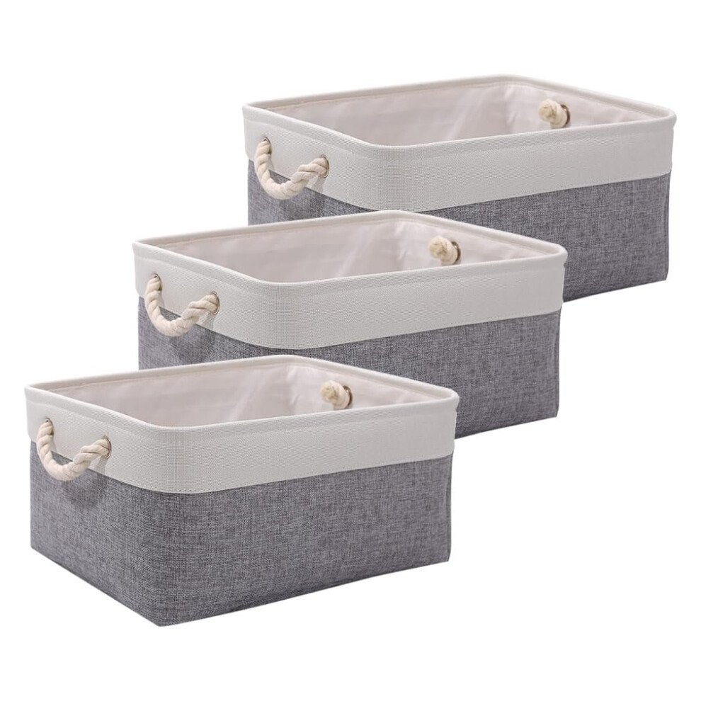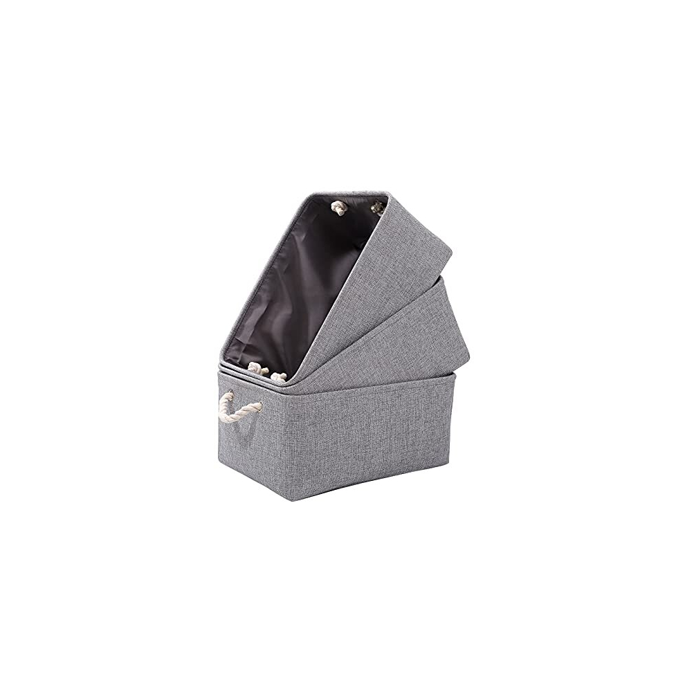 June tech Small Fabric Storage Basket Set of 3, Waterproof Foldable Storage Baskets, Canvas Storage Boxes for Wardrobe, Bedroom, Office Products (Grey