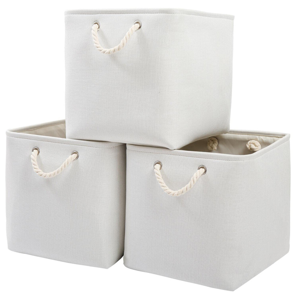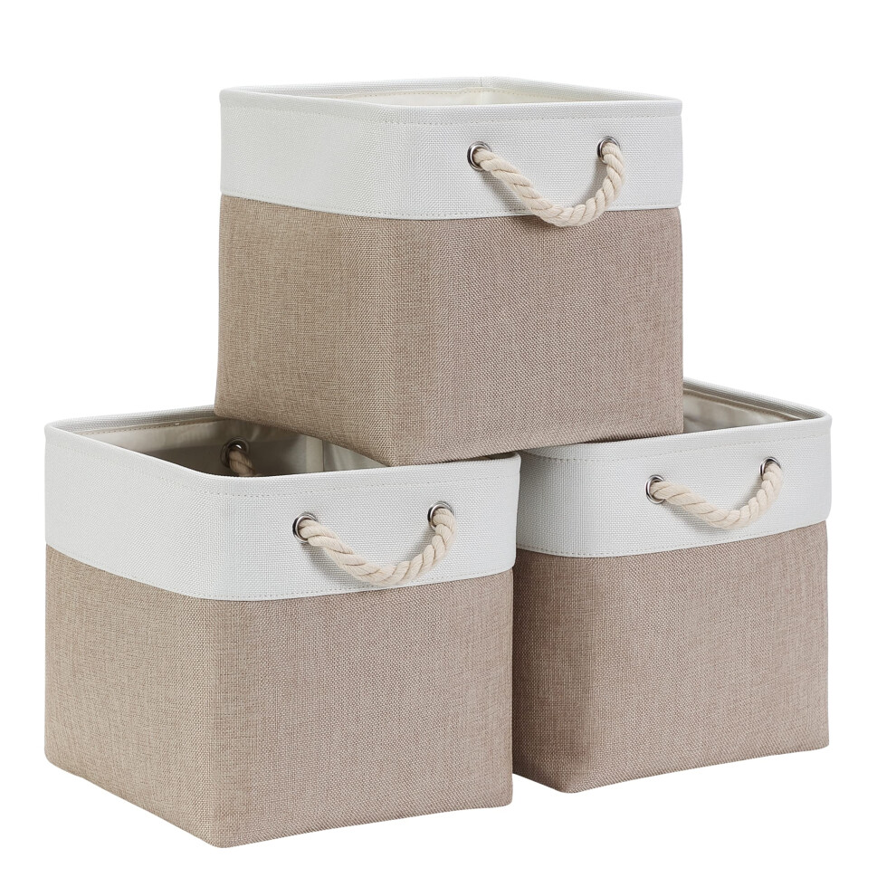Fabric Storage Basket, Canvas Cube Storage Boxes 11.8 x 11.8 inch for Cupboards, Shelves, Closet, Khaki Cream (30x30x30cm, 3 Pack)