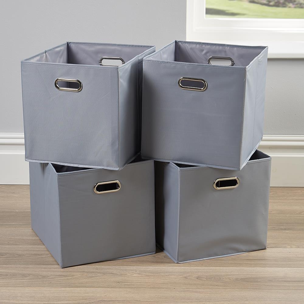 Home Source Cube Storage Boxes, Collapsible Fabric Storage Baskets, Foldable Canvas, 4 Piece, Grey
