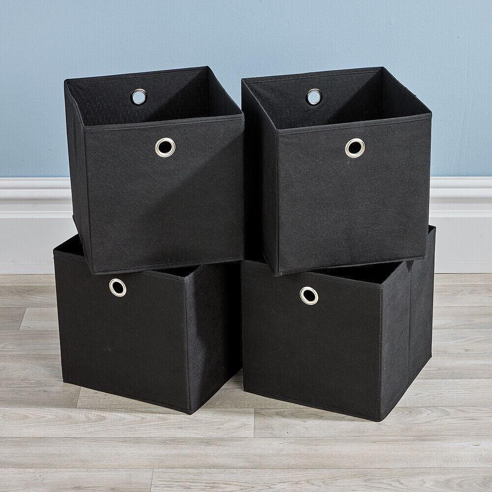 Home Source Cube Storage Boxes, Collapsible Fabric Storage Baskets, Foldable Canvas Organising Boxes, 4 Piece, Black