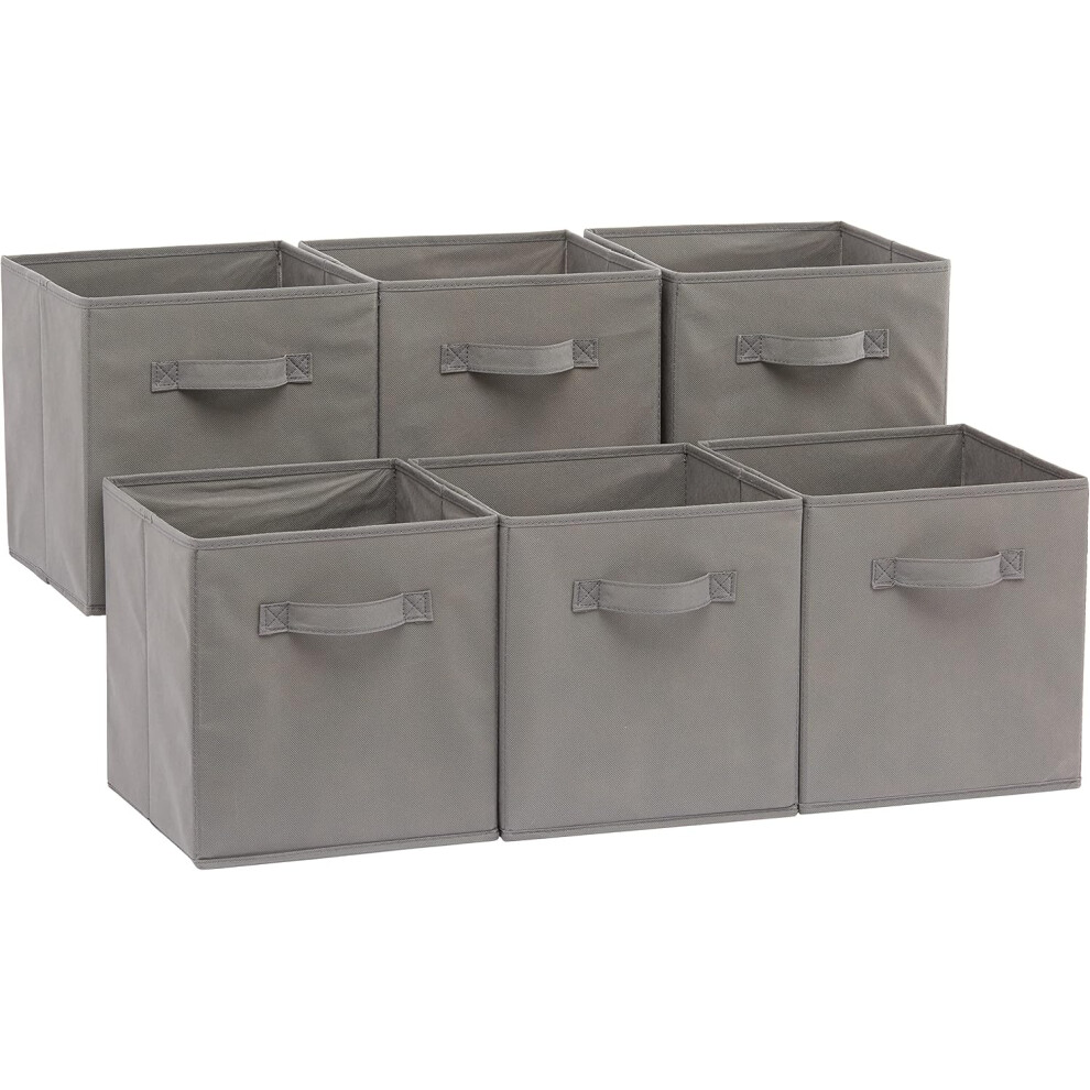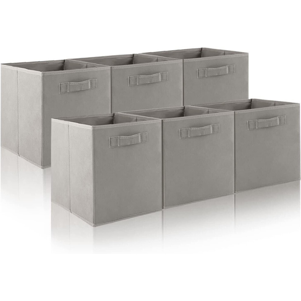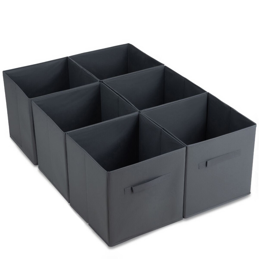 6-Pack Foldable Canvas Storage Boxes - Gray Collapsible Cube Organizer (27 x 28 x 27 cm)
