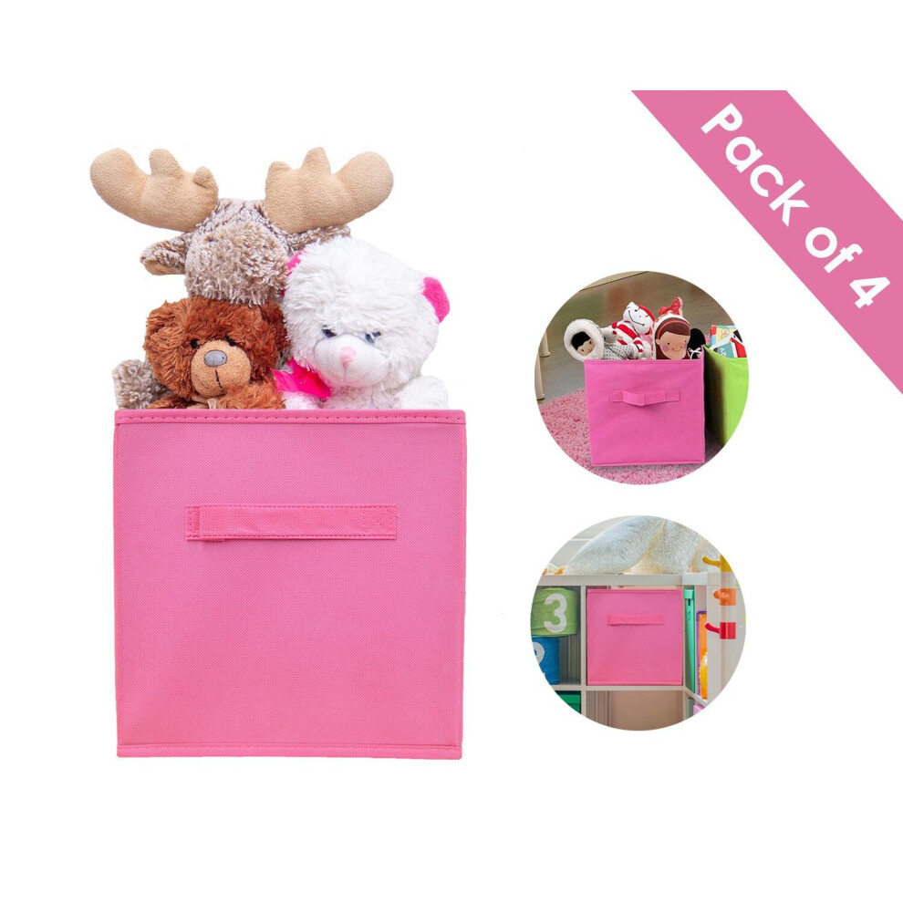 Home Source Cube Storage Boxes, Collapsible Fabric Storage Baskets, Foldable Canvas Organising Boxes, 4 Piece, Pink