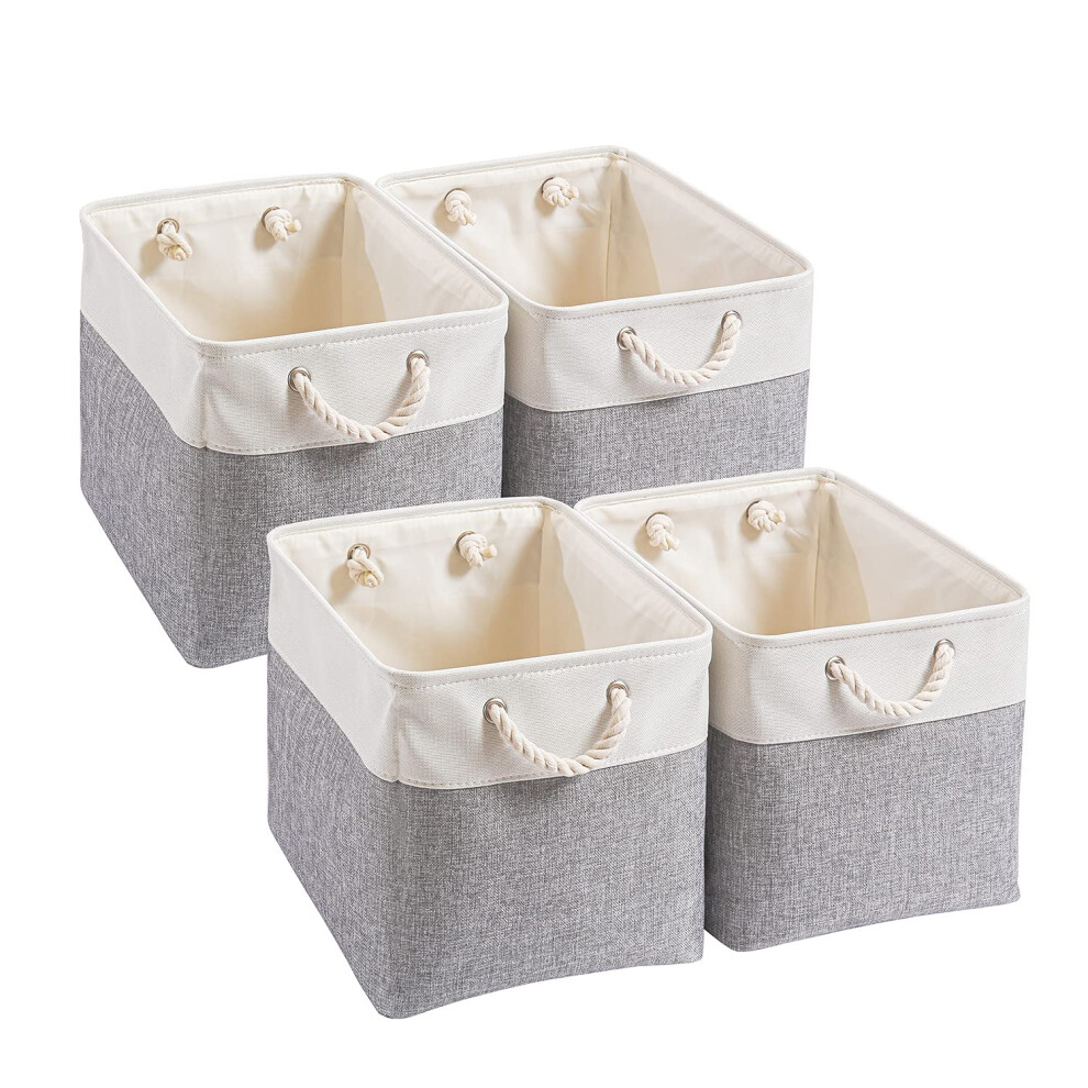 Canvas Storage Boxes, 33 x 38 x 33cm Large Foldable Storage Baskets for Organizing Clothes Nursery Home (Grey/White, Set of 4)