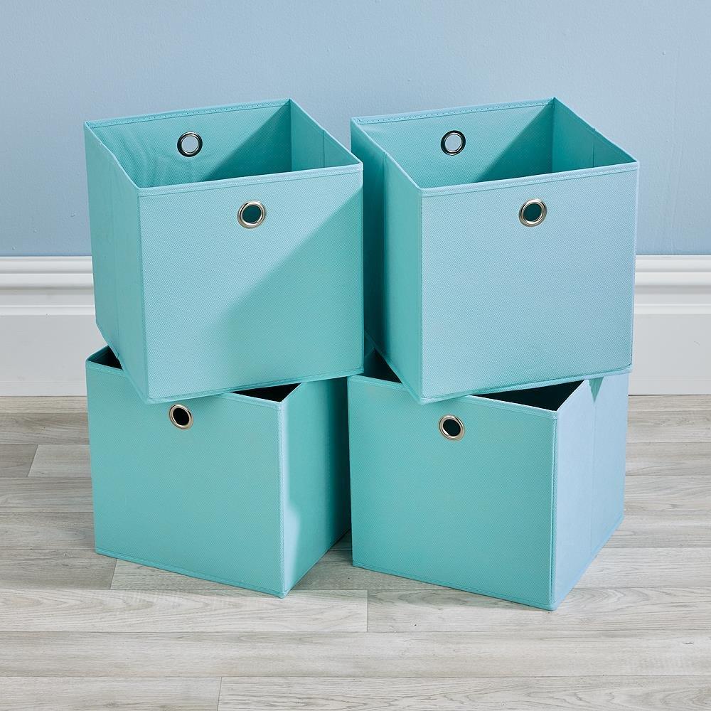 Home Source Cube Storage Boxes, Collapsible Fabric Storage Baskets, Foldable Canvas Organising Boxes, 4 Piece, Aqua Blue
