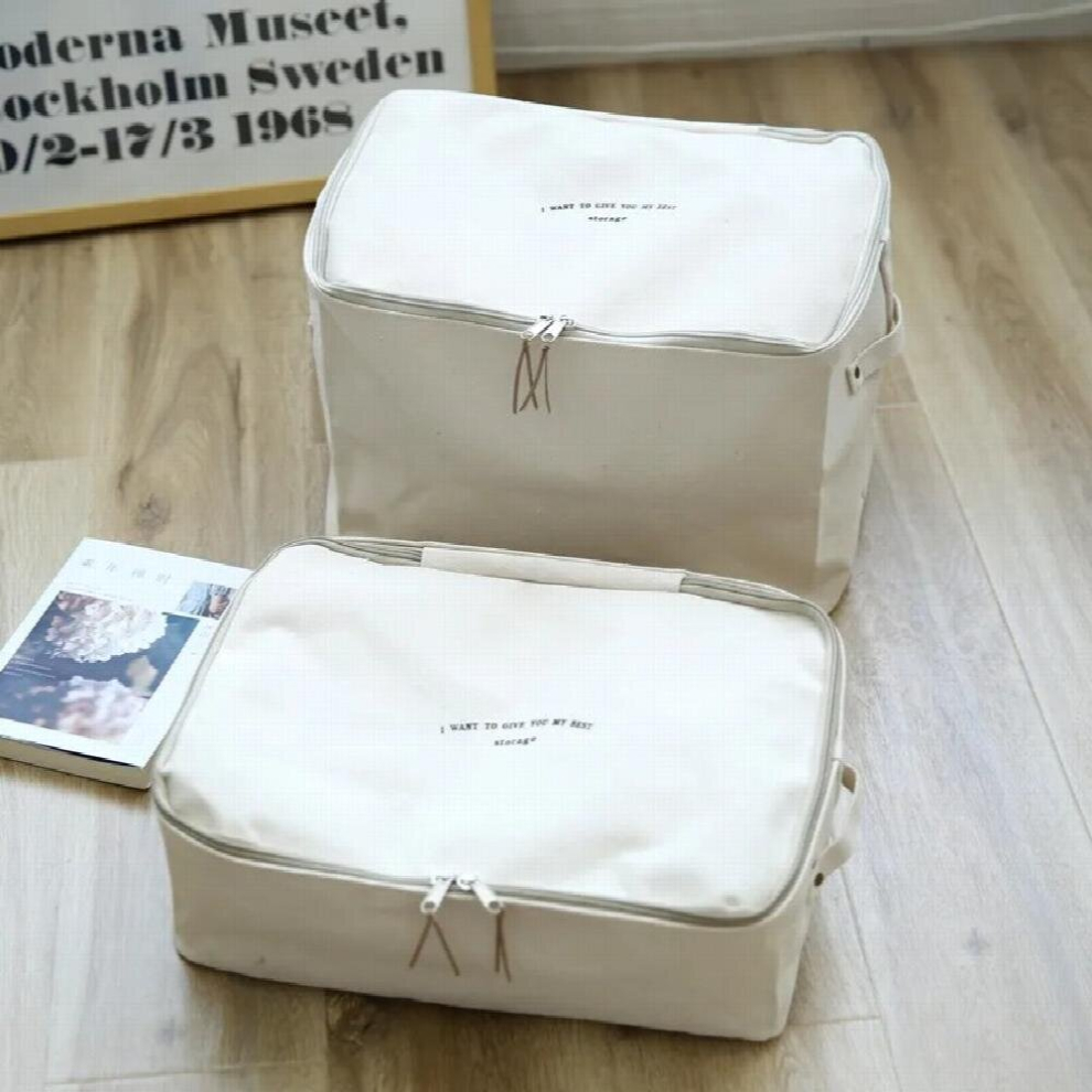 Storage Bins Foldable Canvas Fabric Storage Boxes with Zipper Lid Handles Home Baskets Closet Clothes Organizer Container TJ8253