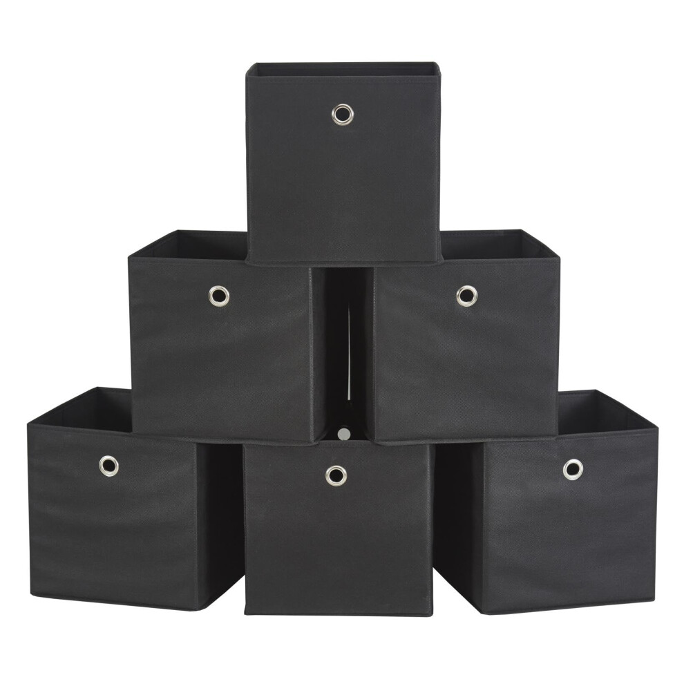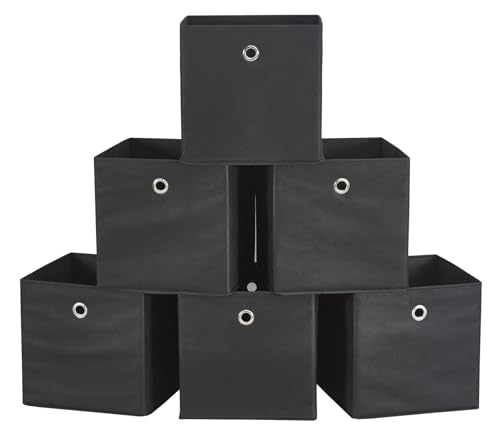 Webeasy 6-Pack Black Canvas Storage Boxes - Foldable Cube Organizers with Eyelet Handles, 28x28x28cm for Home, Office & Nursery
