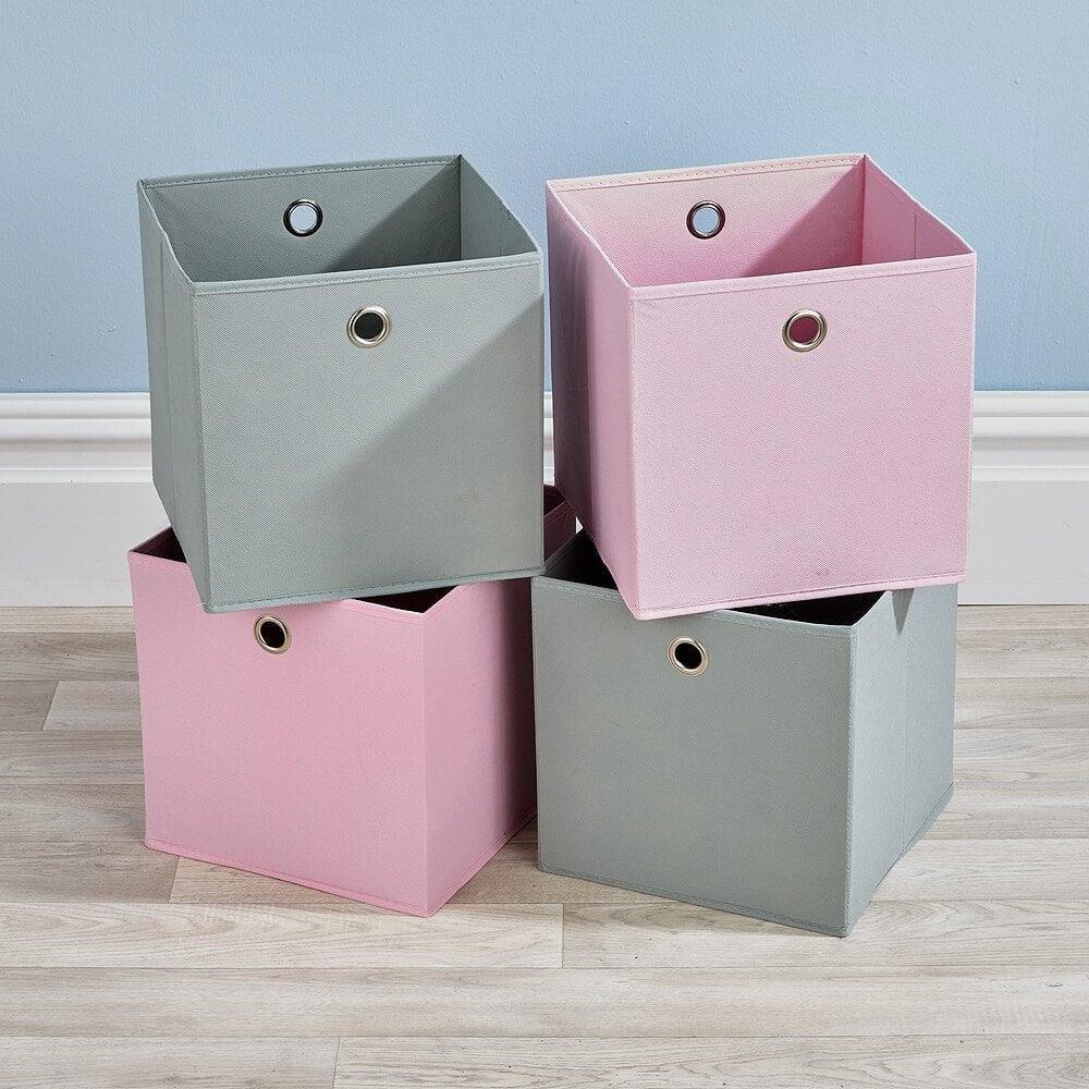 Home Source Cube Storage Boxes, Collapsible Fabric Storage Baskets, Foldable Canvas Organising Boxes, 4 Piece, 2 Pink, 2 Grey