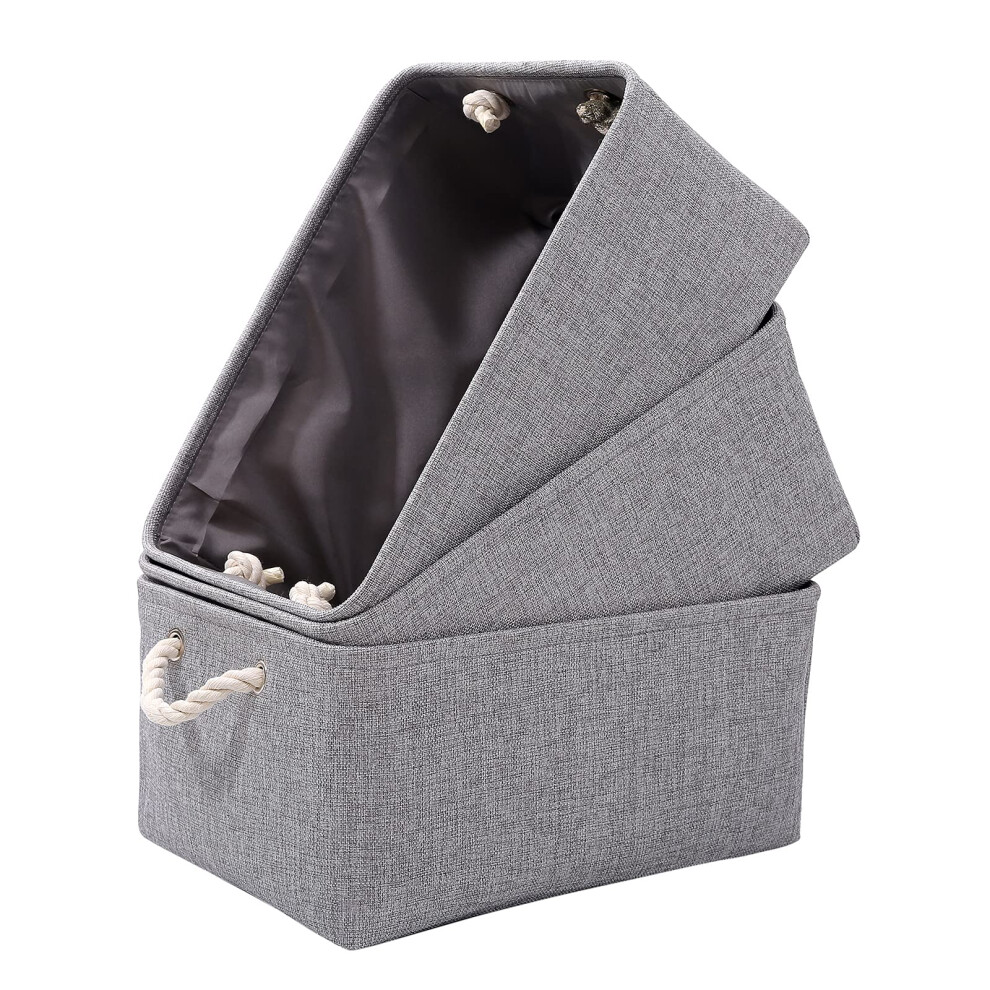 Small Grey Storage Box with Handles, 3 Pcs Thicken Canvas Storage Boxes, Wardrobe Storage Baskets, Collapsible Linen Storage Box for Toys, Clothes and