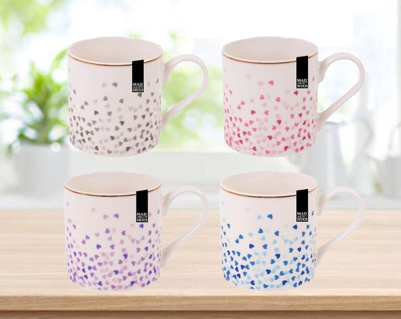 4 Heart Mugs 12oz New Bone China Coffee Tea Cappuccino Drinking Mugs Cup Set