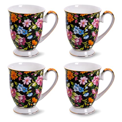 MIATTCLD Porcelain Coffee Mug Set of 4-11oz/312ml Tea Latte Cappuccino Hot Chocolate Cups - New Bone China Mugs - Ideal Christmas Valentines Mothers Day Gift (Black)