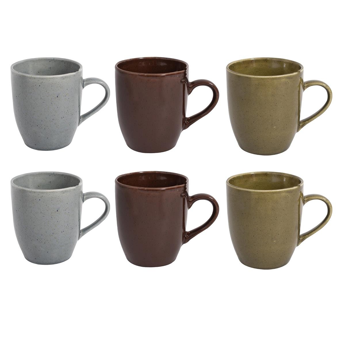 Set Of 6 Reactive Glaze Coffee Mugs Green Brown Grey Tea Latte Cappuccino Cups