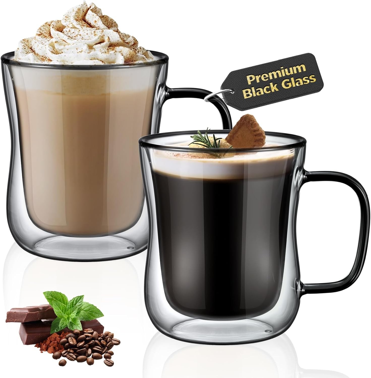 ecooe 2x350ml Unique Black Double Walled Coffee Glasses Mugs Cappuccino Latte M