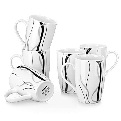 VEWEET, Series Fiona, 6 Piece Mug Sets 480ml Porcelain Patterned Coffee Tea Mugs, Drinkware Height 12.3cm, High Capacity Baverage Mugs for Cappuccino, Coffee, Tea, Cocoa, Mulled Drinks