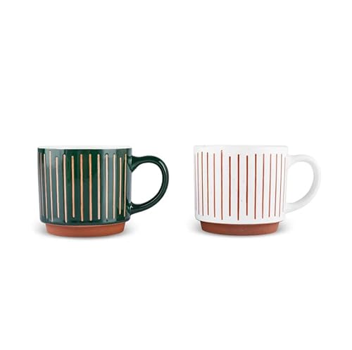 KARACA Primavera Stoneware Mug with Handle, Large Tea Cups and Coffee Mugs, Ideal Coffee Cup for Serving Latte, Cappuccino, Colorful Stripes, 400ml, Single