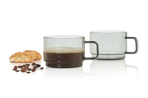 AdHoc Impact Set of 2 Coffee Cups, 300ml, Mugs for Tea, Latte, Cappuccino with Handle, Heat Resistant Borosilicate Glass