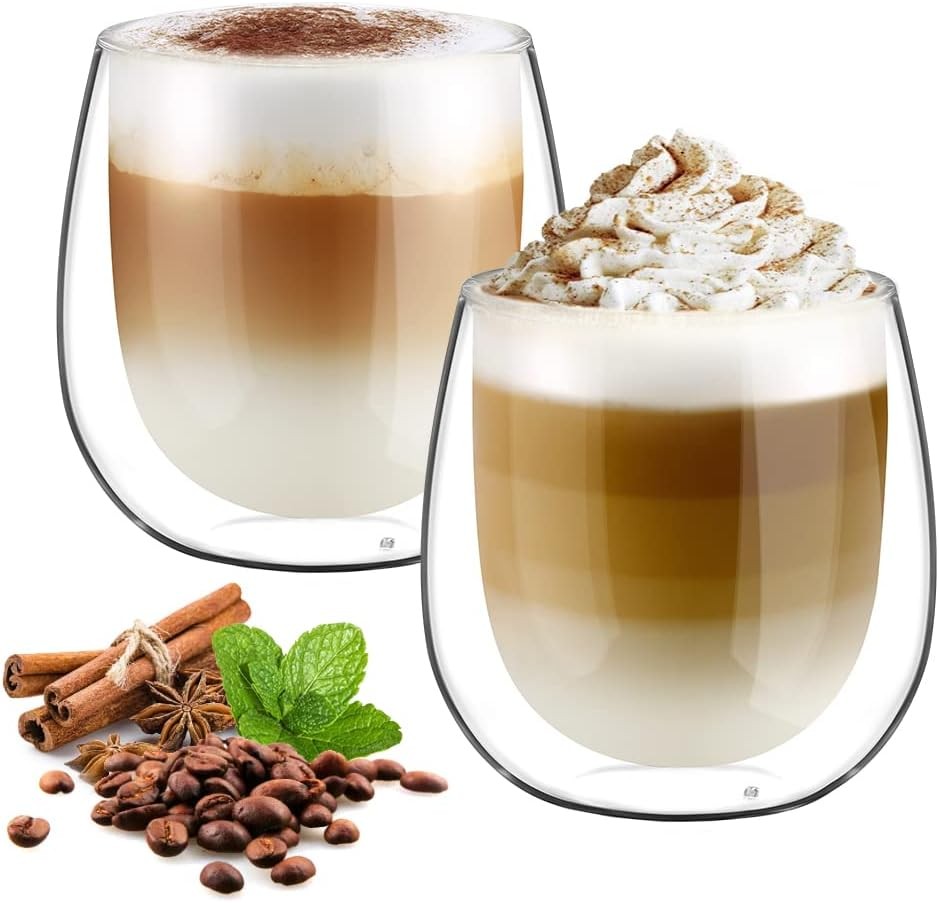 glastal 2x250ml Double Walled Coffee Glasses Mugs Cappuccino Latte Macchiato for