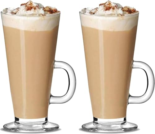 Latte Glasses Tea & Coffee Cups Pack of 2-270ml Temperature Resistant Hot Drink Cafe Mugs with Handle Ideal for Milk Juice Ice Cream Latte, Cappuccino, Espresso and Hot Chocolate