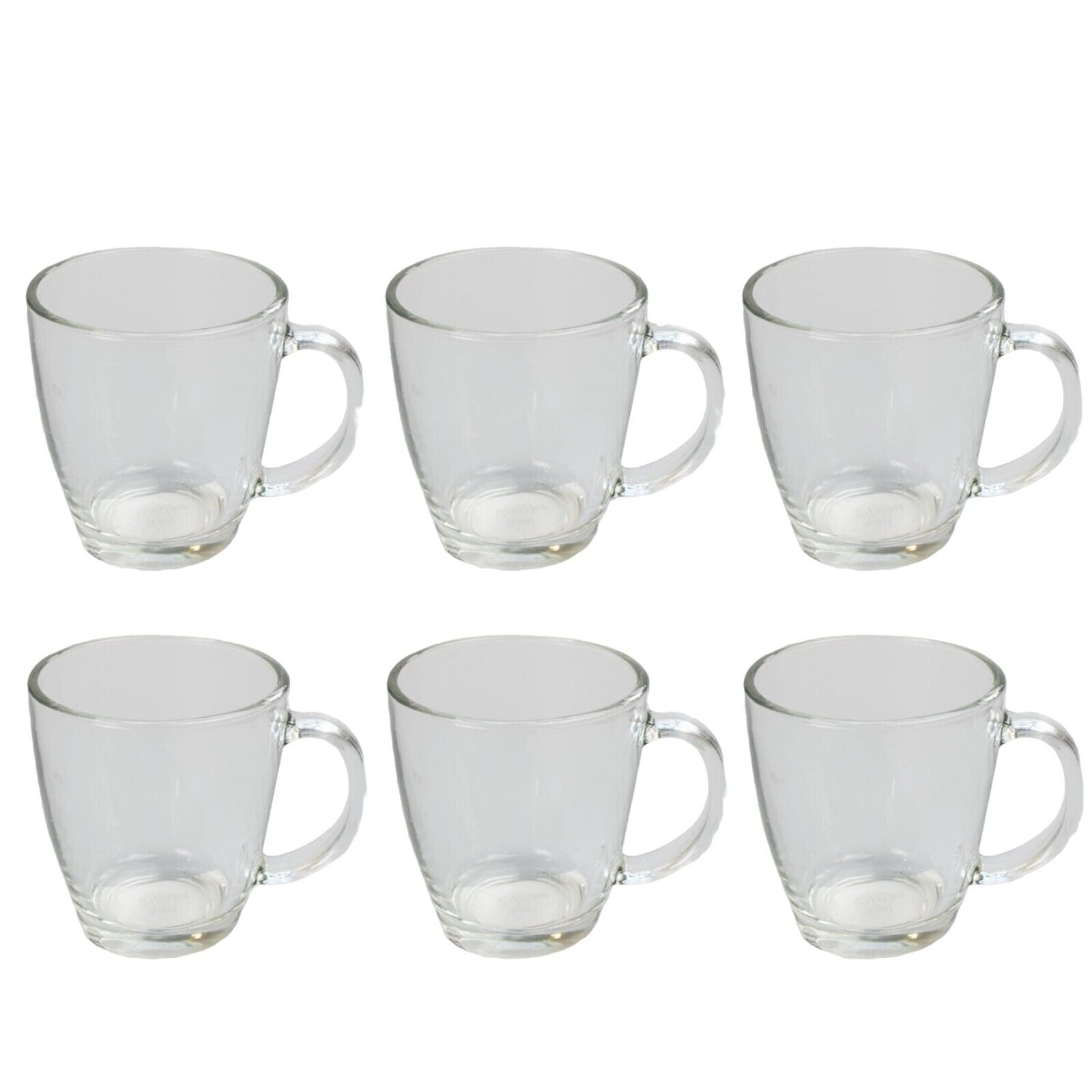 6pk 350ML Coffee Cups Glass Cappuccino Hot Drink Mugs Tea Glass Handle G5909 UK