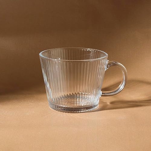 KARACA Plain Glass Mug with Handle, Clear, Large Tea Cups and Coffee Mugs, Durable Glass Coffee Cup for Home and Office Use, Ideal for Serving Latte, Cappuccino, 380ml, Single