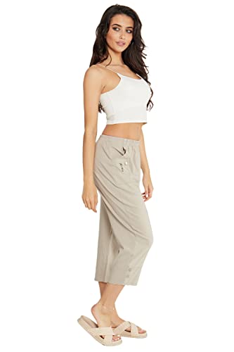 VR7 Womens Ladies Elasticated 3/4 Shorts Cropped Capri Trousers Stretchy Pockets Pants (UK 18, Beige)