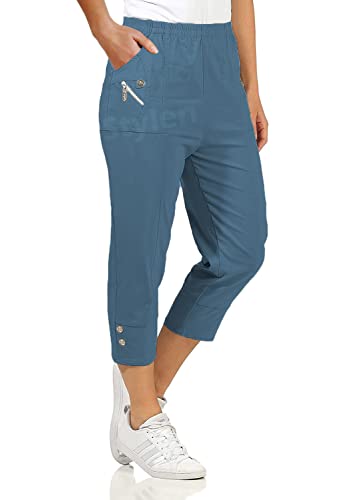 URBAN STITCH Womens Cropped Trousers Ladies Capri Pants Three Quarter Soft Women Stretch Pull on Trousers Elasticated Waist Plus Size Summer Shorts (14, Indigo)