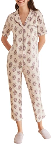 Women'secret Women's Mix and Match Spring Drops Capri Pyjamas Pajama Set, Ecru Print, M