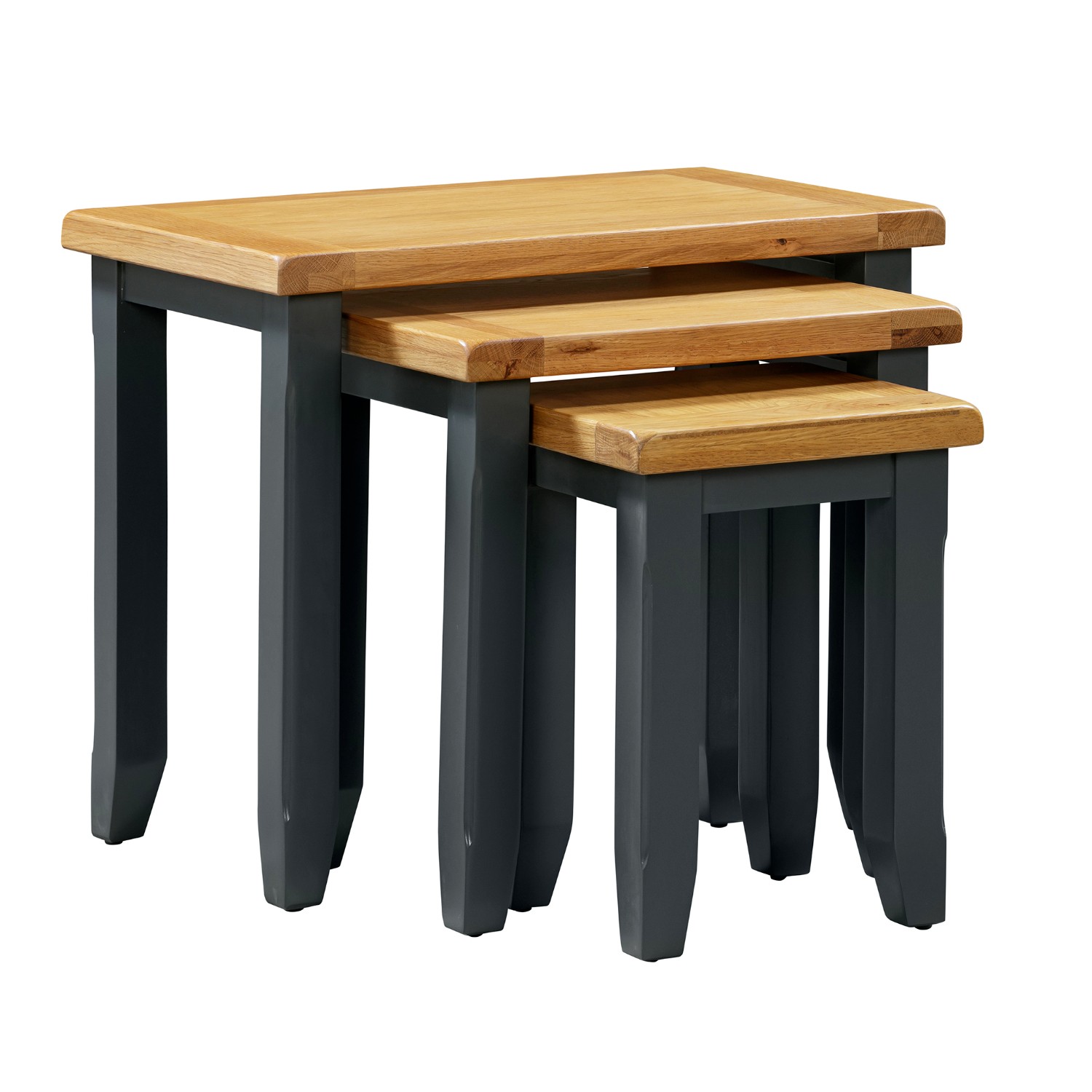 Capri Nesting Tables Set of 3 Natural Oak Wood Tabletop Hardwood Body Dark Blue