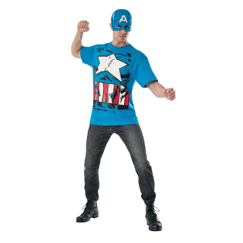 (M, White/Blue/Red) Captain America Mens Costume T-Shirt