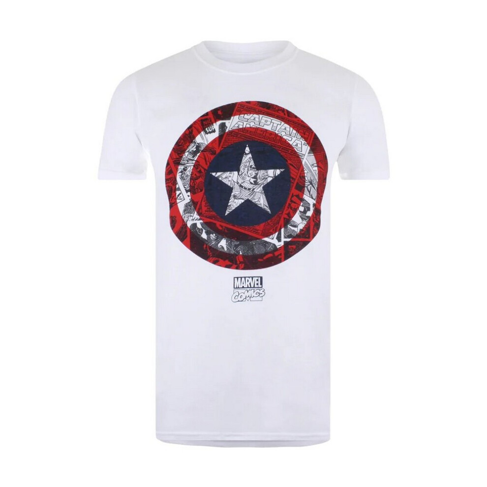 (S, White/Red/Navy) Captain America Mens Shield T-Shirt