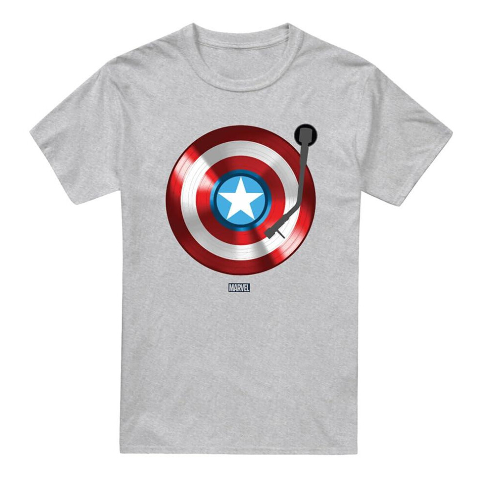 (M, Heather Grey) Captain America Mens Record Shield T-Shirt