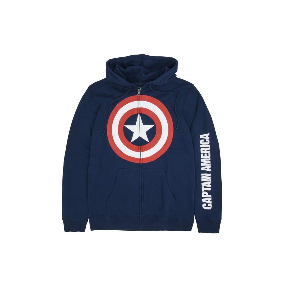 Captain America 888688-large Captain America Shield & Sleeve Logo Zip-Up Hoodie - Navy - Large