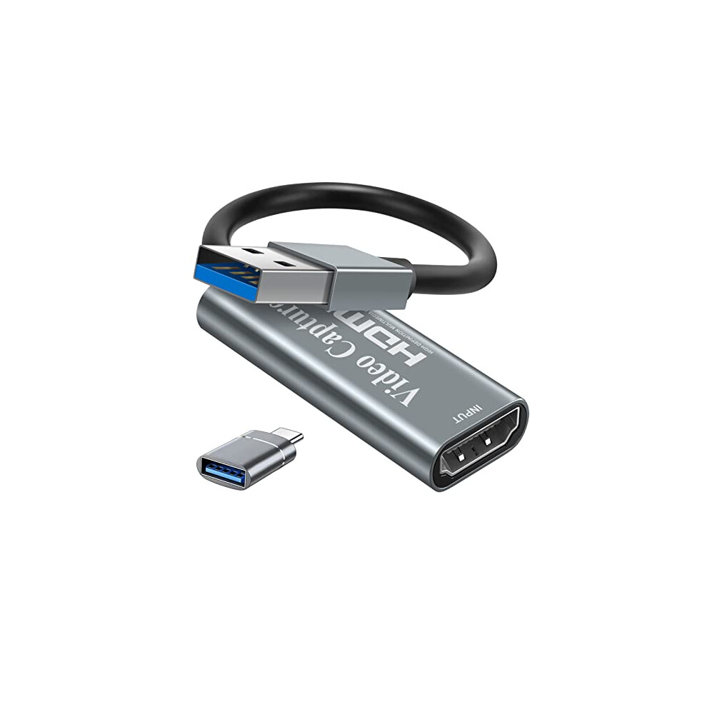 Video Capture Card USB3.0 HDMI to USB C, 4K 1080P 60FPS Capture with Type-C Adapter Devices for Gaming Live Streaming Recorder Compatible with Windows