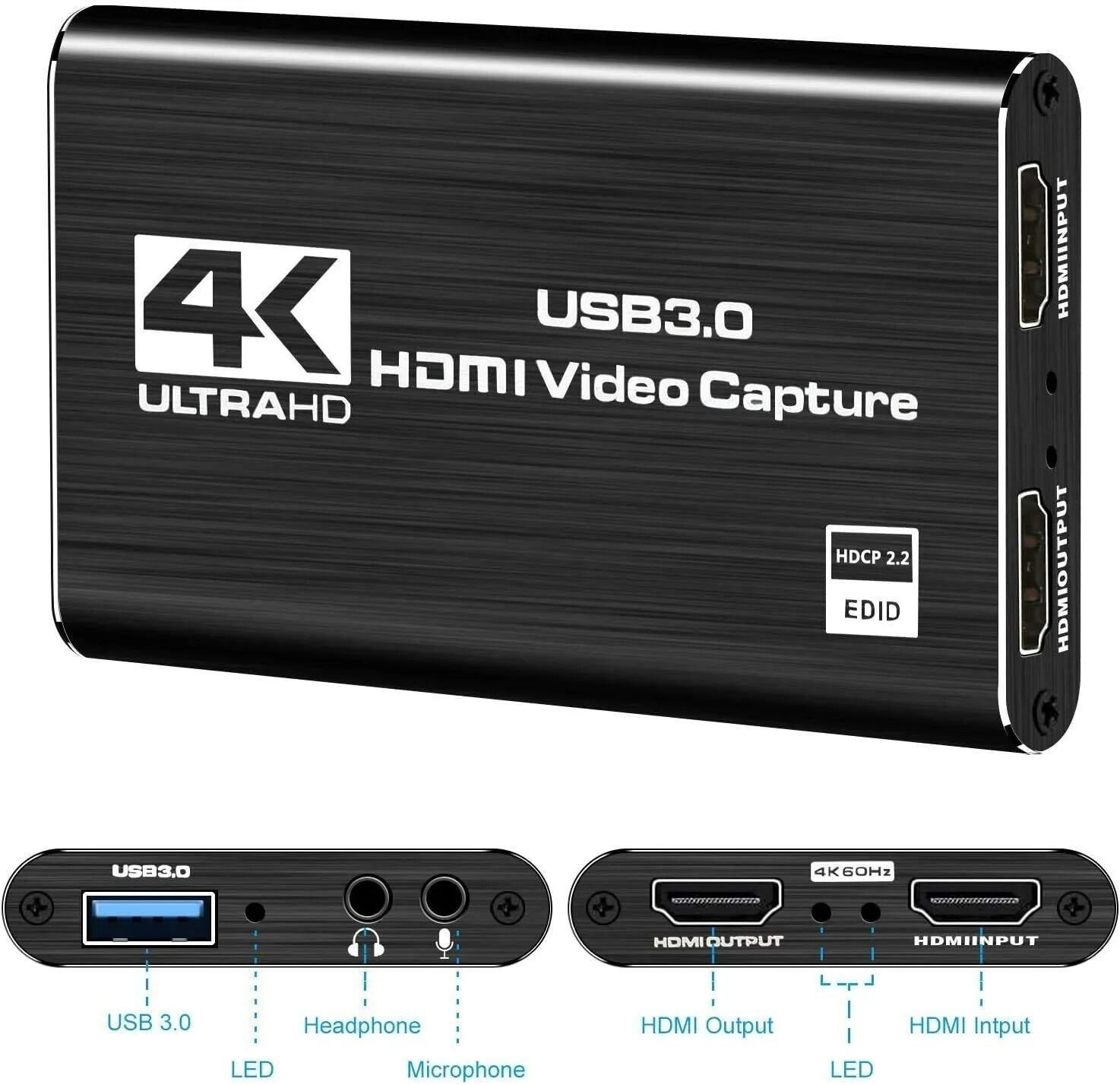 4K Audio Video Capture Card, USB 3.0 HDMI Video Capture Device HD Camera Recordi