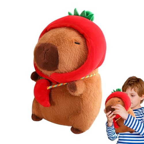 Xumann 28cm Capybara Plush Toy, Cute Soft Pepper Hat Wearing Capybara Toys for Kids Present