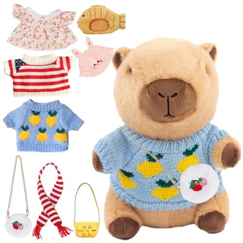 Xeihuul Capybara - 9.84 Inch Dress Up Stuffed Capybara Toys, Cute Capybara, Capybara Plush With 7 Clothes And Accessories