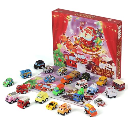 Ngbbby Christmas Advent Calendar 2024, 24 Days Christmas Countdown Calendar with 24 Pull Back Car, Advent 2024 for Kids Xmas Holiday Decor Gifts