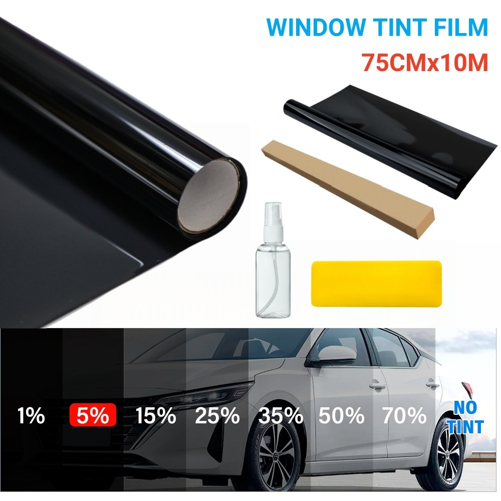 75cmx10m Car Window Tint Auto Tinting Film Limo Black Dark Medium Ultra Light 5%
