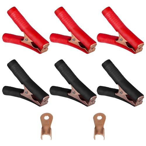 EEEKit 6PCS Car Battery Alligator Clips, 100A Electrical Crocodile Jump Leads Clips with Terminal, Booster Charging Cable Clamps