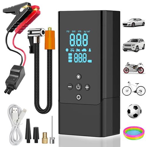 12v Portable Car Jump Starter - Air Compressor Battery Start Emergency Booster Charger Volt Leads Rechargeable Built in 3.5w Spotlight Garage All in One Travel
