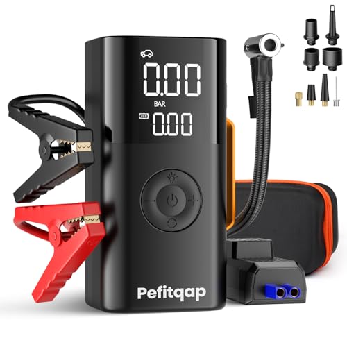 10-IN-1 5000A Jump Starter Power Pack with 150PSI Air Compressor, Blower & Vacuum, Pefitqap 12V Car Battery Booster Jump Starter with Jump Leads, Portable Power Bank, LED Lights(10L Gas/8L Diesel)