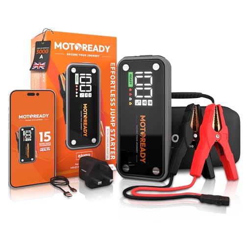 MOTOREADY Jump Starter Power Pack | 3000A Portable Car Battery Booster Jump Starter (Up to 8.0L Gas and Diesel 12V) | Long Jump Leads | X2 USB Quick Charge Power Bank | Charger Adapter | Heavy Duty