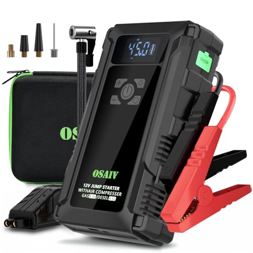 OSAIV 6-in-1 Jump Starter Power Pack with Air Compressor, 12V 3000A Portable Car Battery Booster and 150PSI Tyre Inflator for 8.5L Petrol/6.5L Diesel, 14800mAh Power Bank with LED Light and Jump Leads