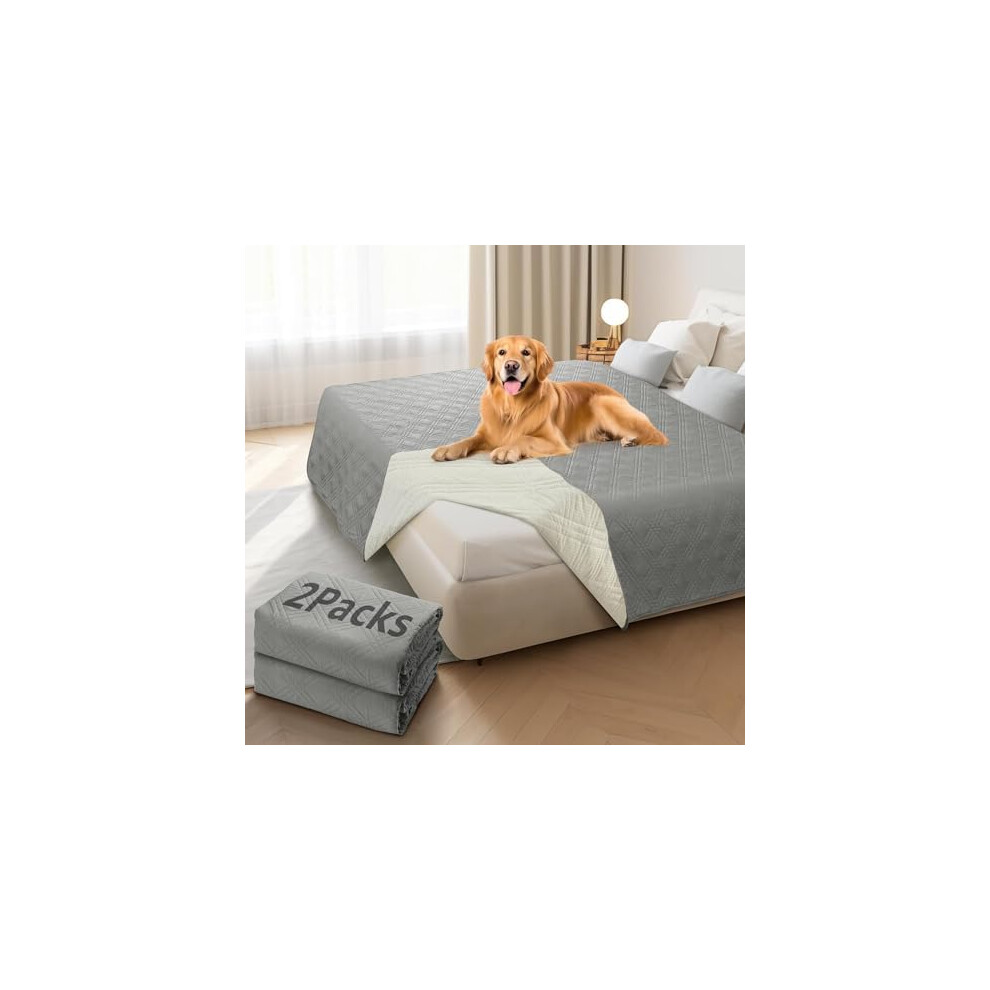 Waterproof Dog Blanket, Anti-Slip Bed Couch Covers for Dogs, 2 Pack Soft Pet Blankets to Protect Furniture Sofa Car for Puppy Cat Kids (208×208cm, Grey)