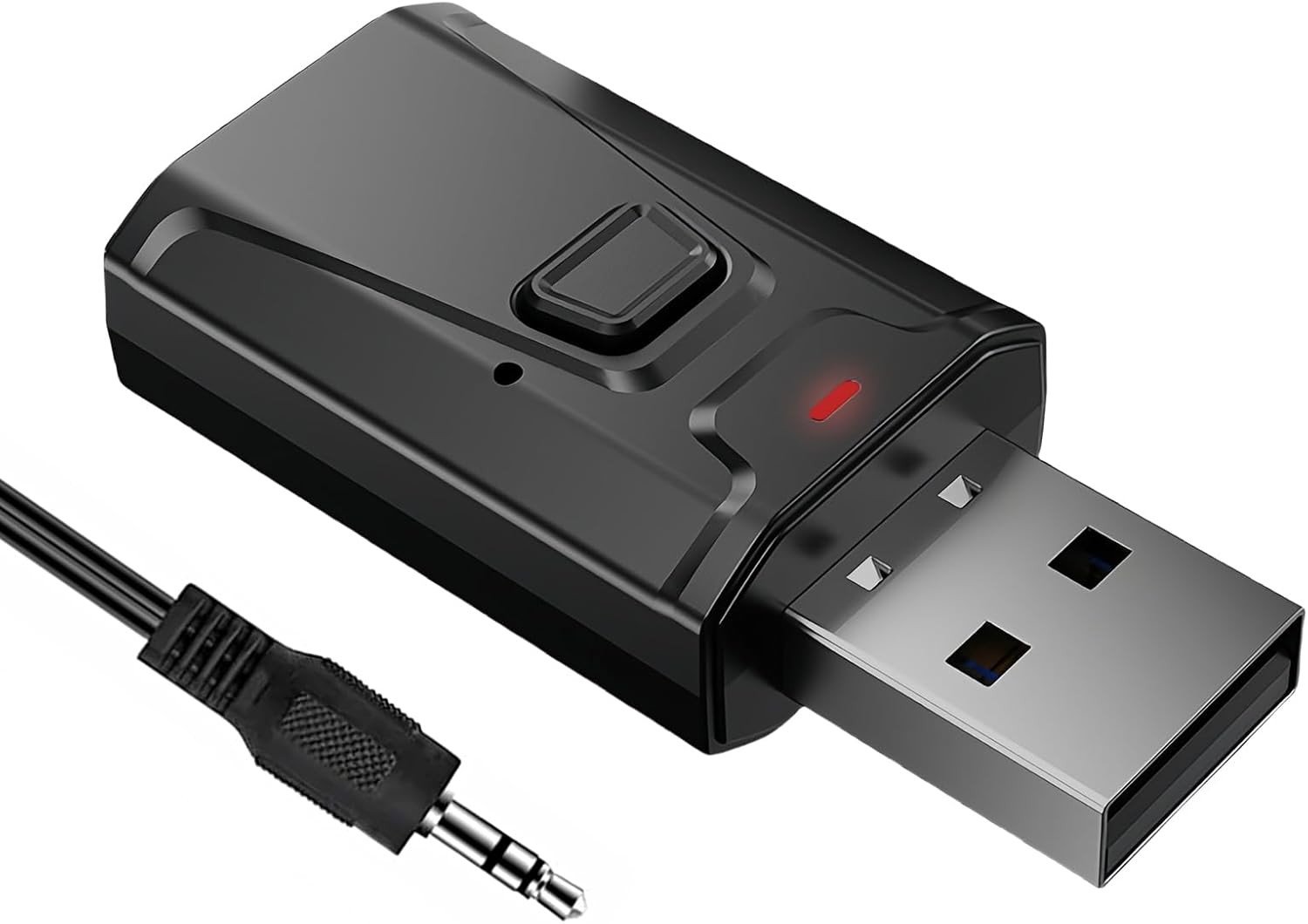 USB Bluetooth 5.0 Dongle Adapter with 3.5mm AUX, 4-in-1 Car Bluetooth Wireless Audio Transmitter Receiver, Plug and Play BT 5.0 Adapter for TV, PC, Home Audio System, Speakers, Headphones